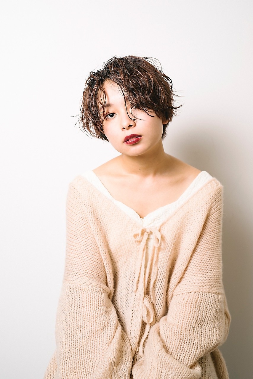 - ラフウェーブ × ローライト × 束感ショートボブ