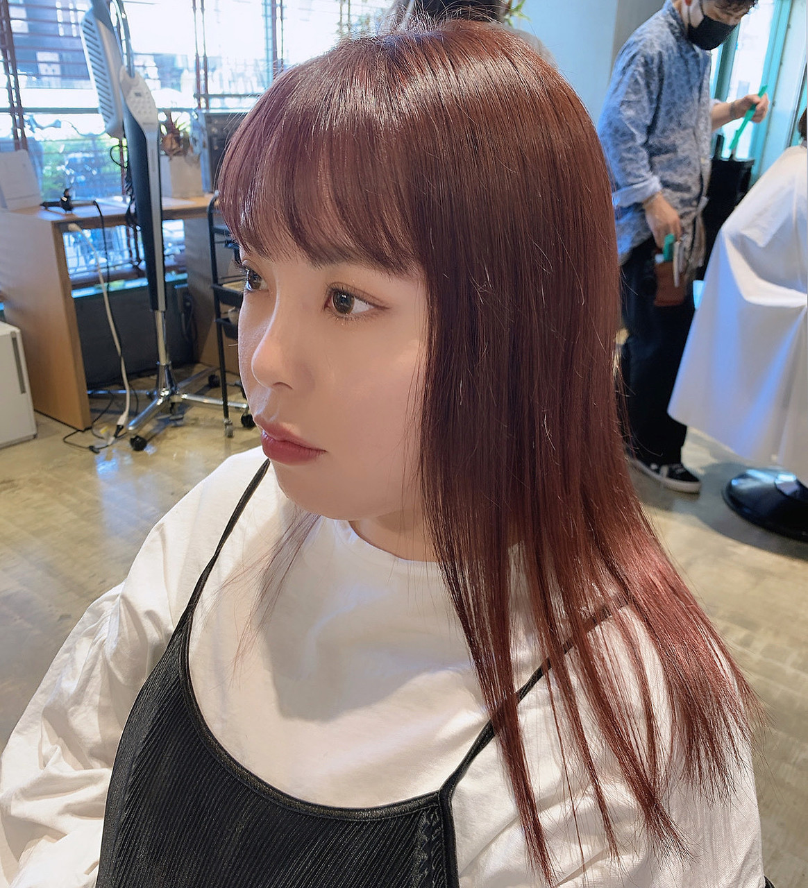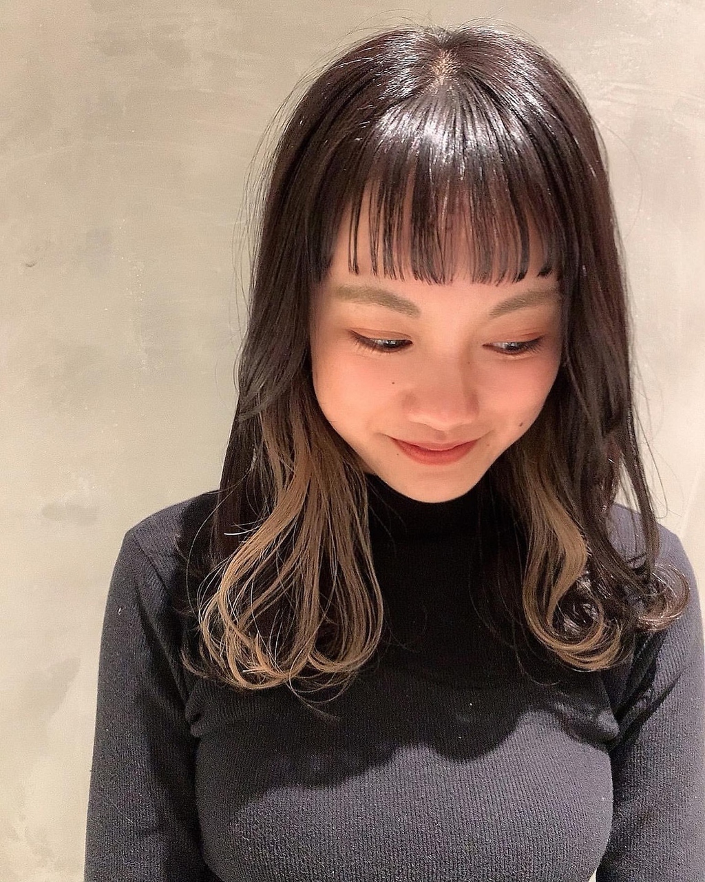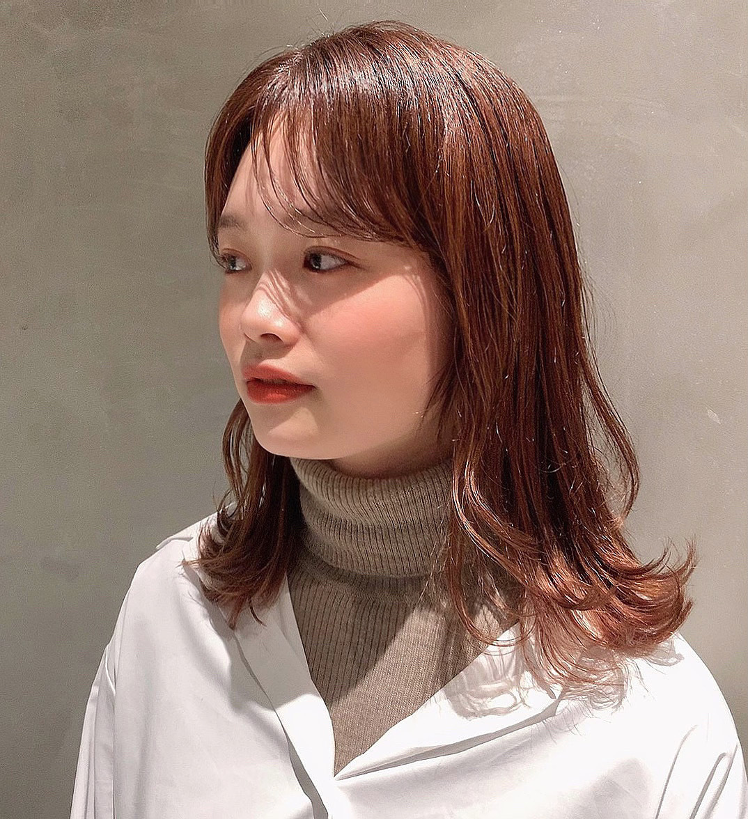 - インナーカラー ベージュ 20代30代バングで小顔に 40代