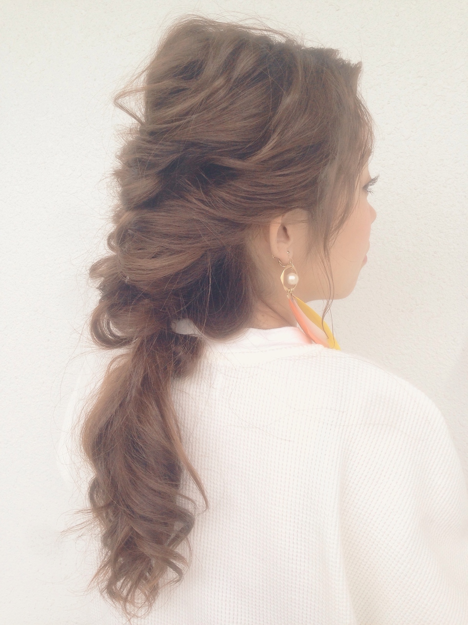- ヘアセット 結婚式ヘアギ ブソンタック 編み込み ルーズアレンジ