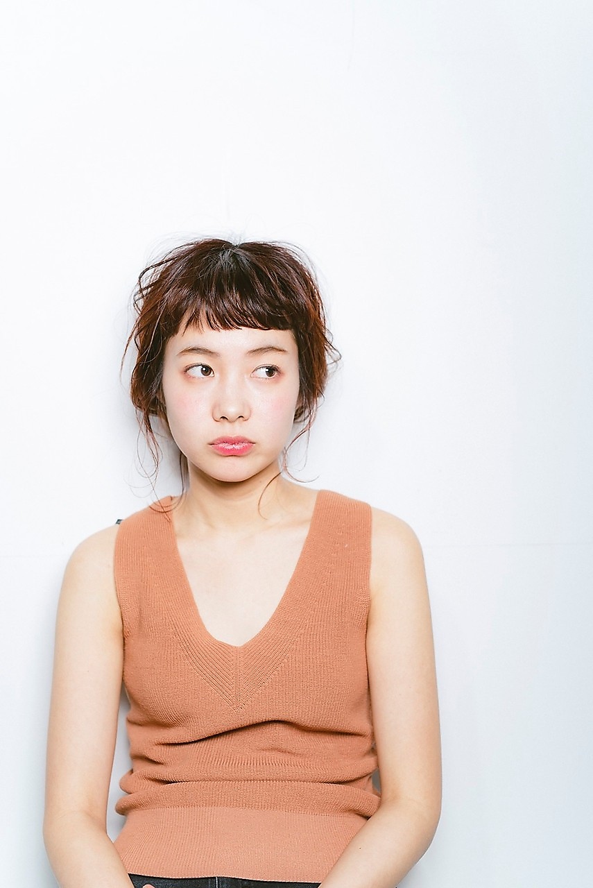 切りっぱなしボブ 斜めバング セミディ 小顔 オン眉 前下がり