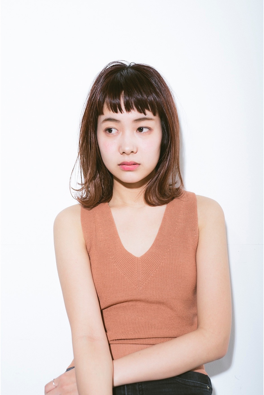 切りっぱなしボブ斜めバング セミディ 小顔 オン眉 20代30代40代