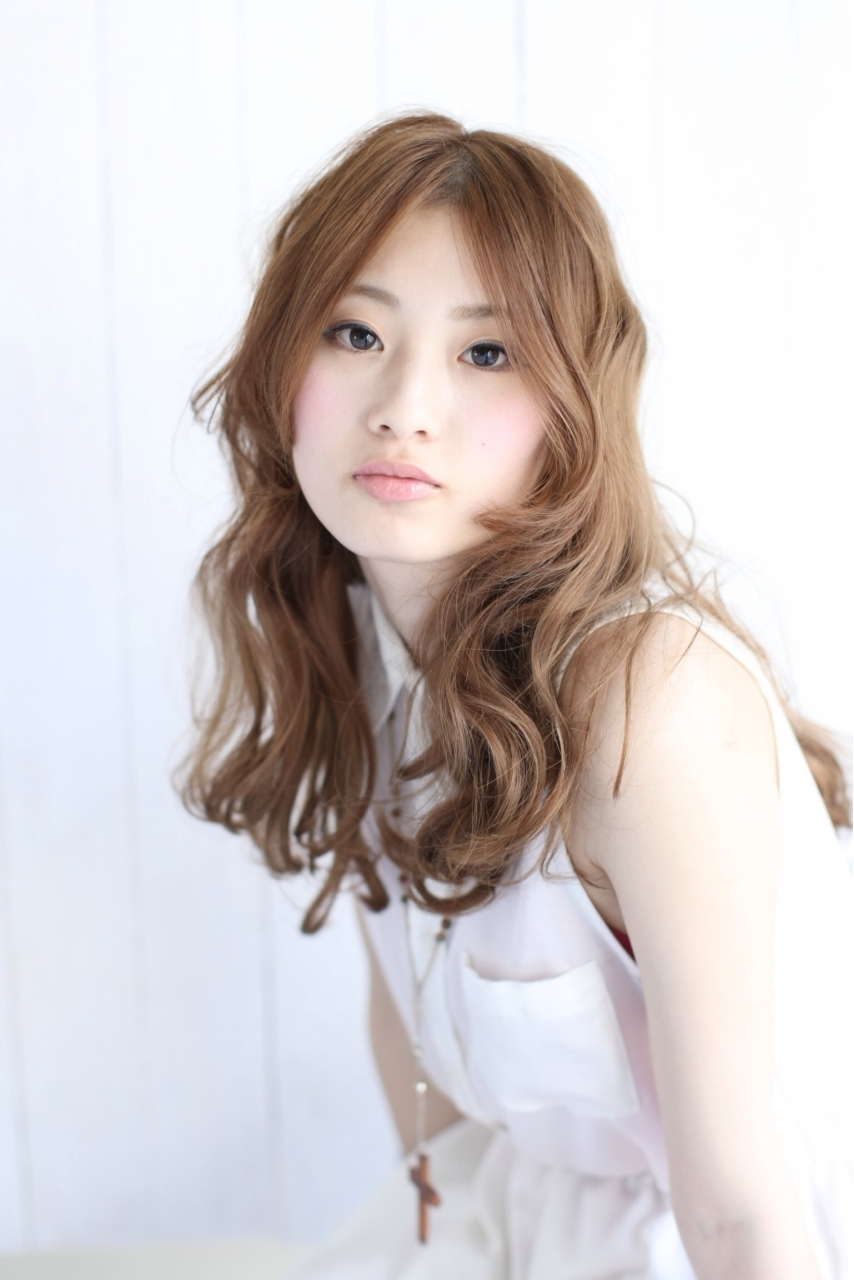 艶のパールベージュカラー。ラフなウェーブで、より外国人風に。透け感、ヌケ感のあるスタイルは、季節問わずにオススメです。