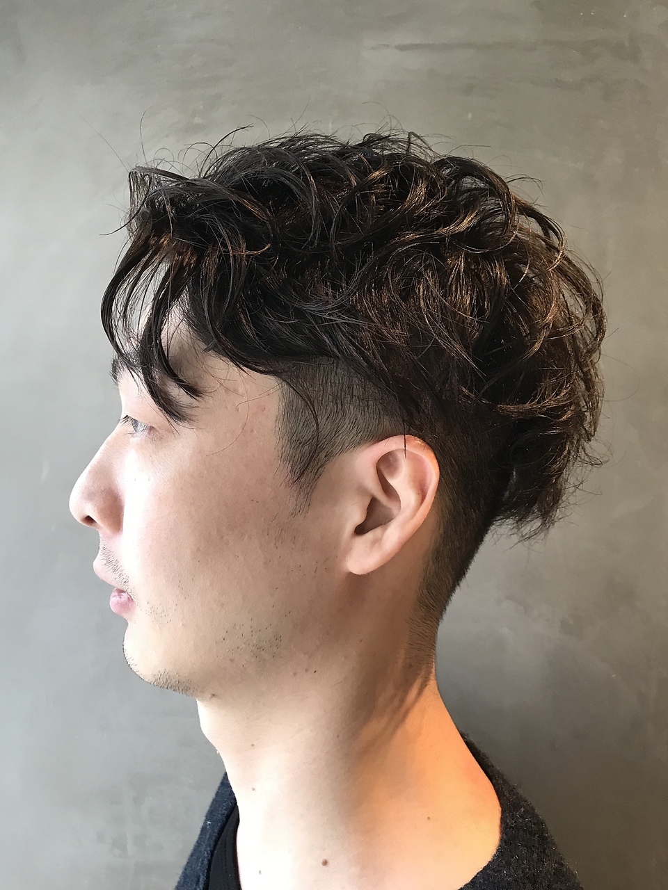 【ラフ無造作】前下がり刈り上げツーブロックマッシュパーマヘア