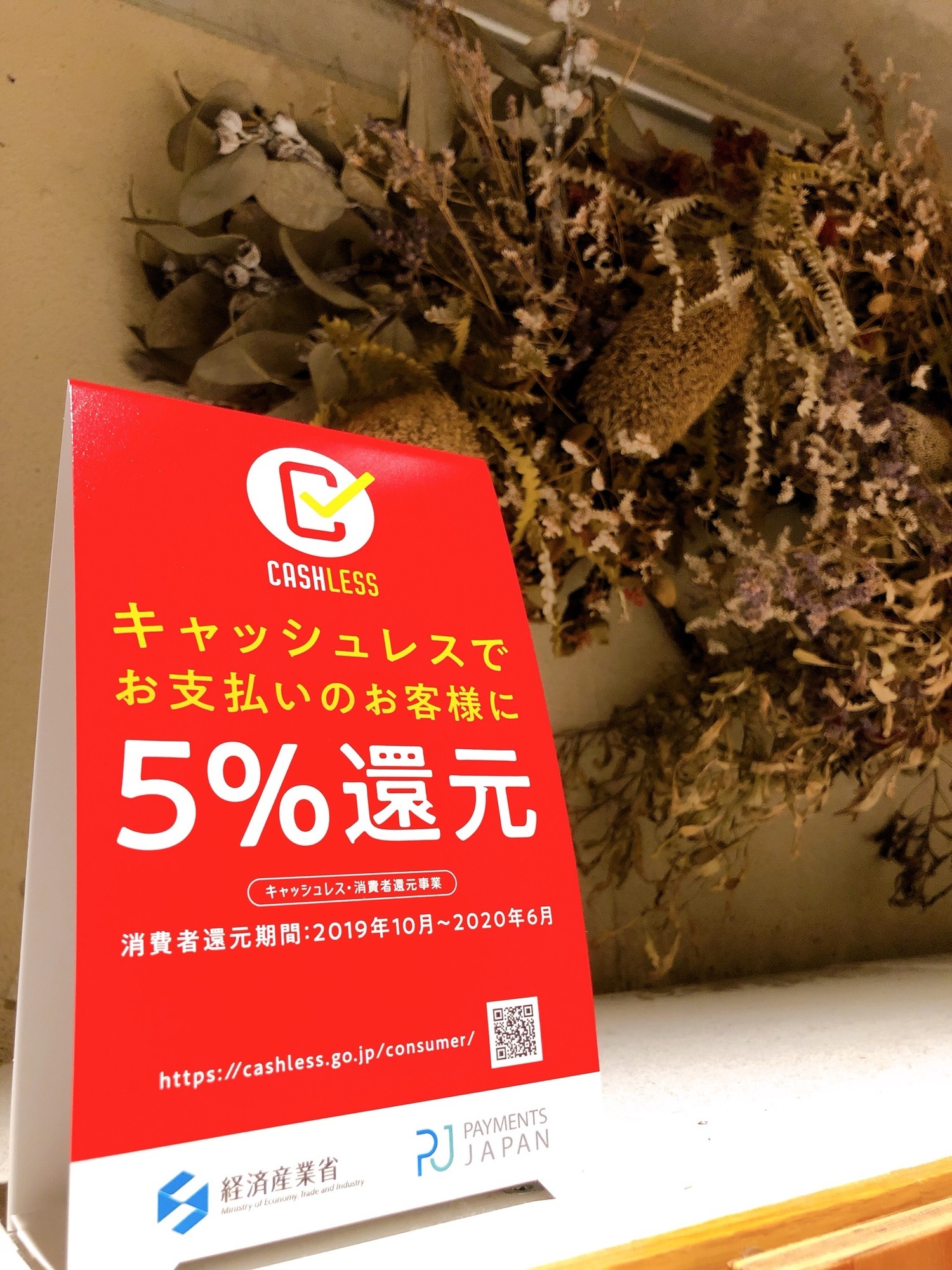 - ~キャッシュレスのお客様に5%還元のお知らせ~