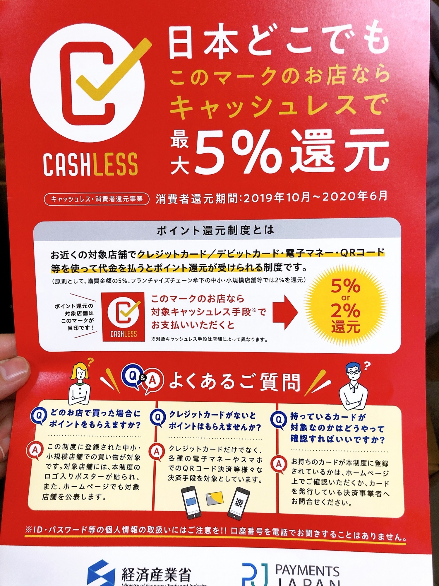 ~キャッシュレスのお客様に5%還元のお知らせ~