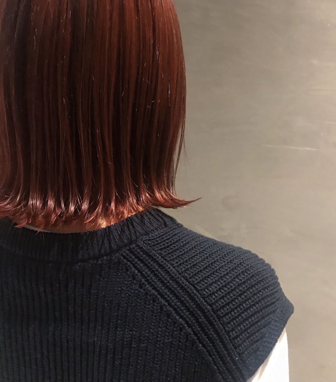 20代30代40代 ぱつっとボブ オレンジヘアー